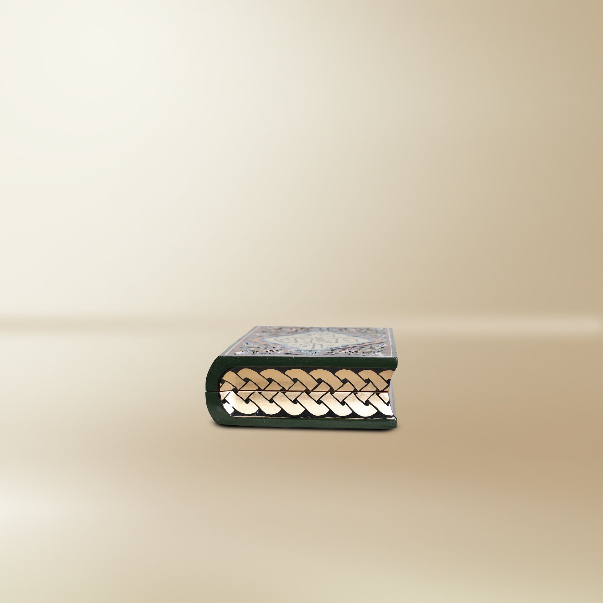 Hand-painted in Damascus, these Quran covers combine sacred words with timeless artistry. Each piece is adorned with vibrant floral motifs and classical Arabic calligraphy, turning protection into beauty. The set of three makes a graceful display or a meaningful gift, carrying both devotion and craftsmanship in every detail.